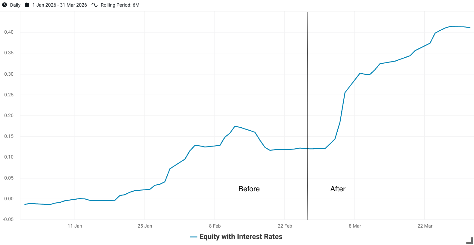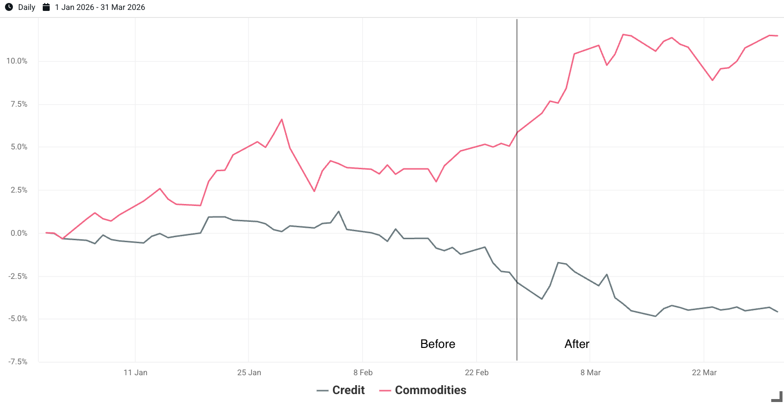 In addition, to capture the quarter's two-act character, we supplement our standard performance exhibit with a sub-period analysis that separates the “before” period from “after” the U.S. president revealed military action with Iran on February 28th.1
