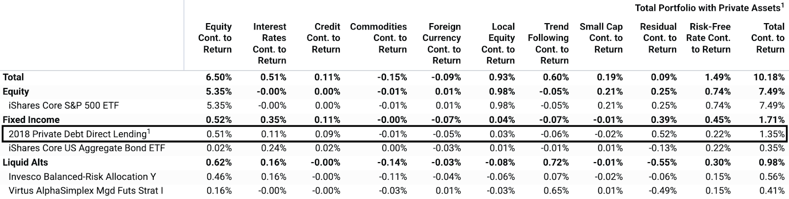 This can lead to insights, such as quantifying which assets drove the systematic or residual return of a total portfolio, inclusive of private assets, as illustrated in Exhibit 5.