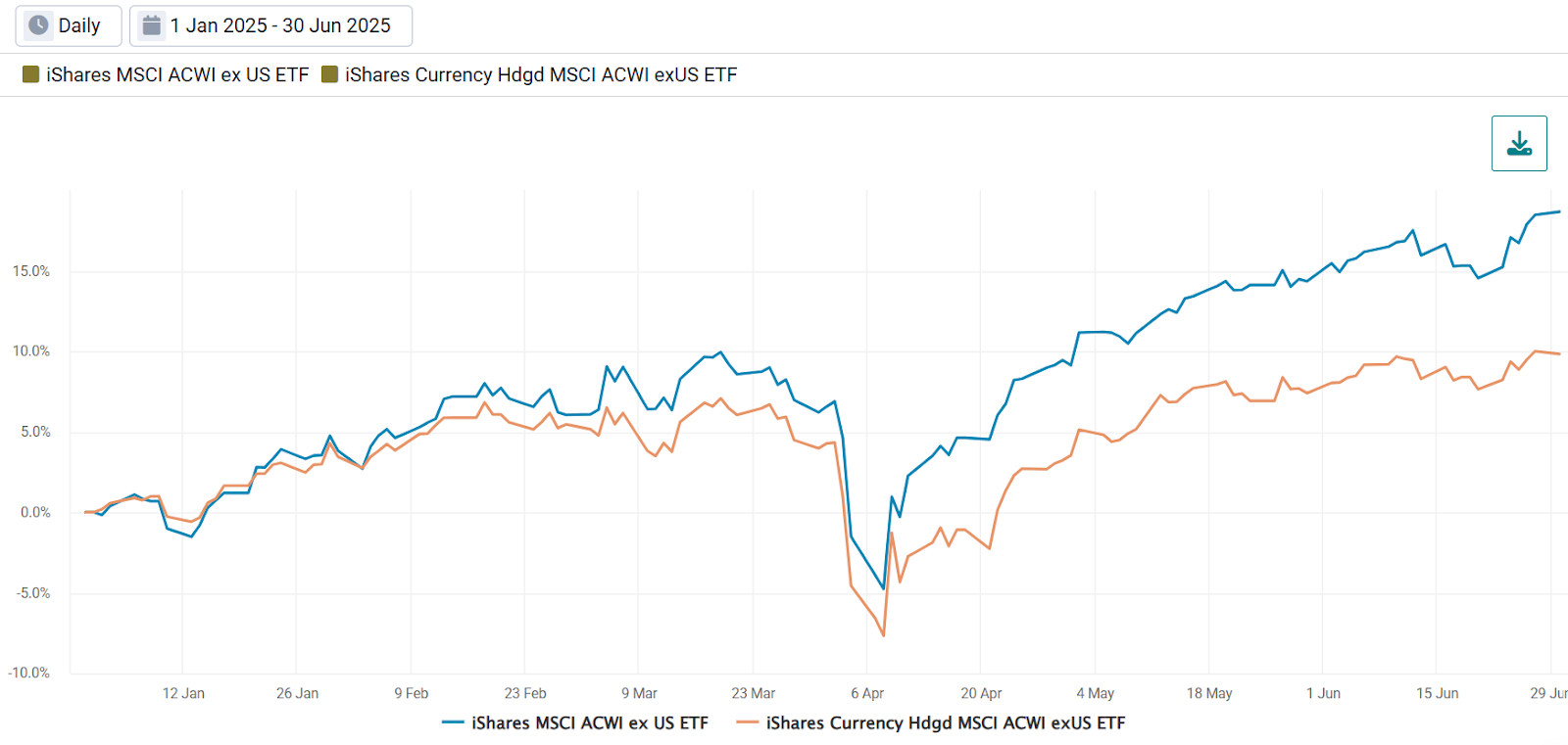 Exhibit 2: YTD Cumulative Return of Unhedged and Hedged Int’l Equities